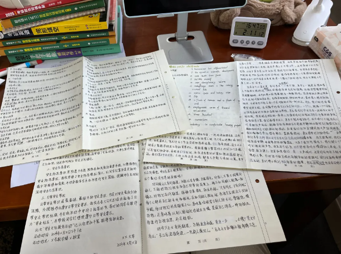 六月暑气渐浓时,疲惫突然涌上来了。看着永远背不完的词条、做不完的真题,第一次怀疑:这样日复一日,真的能考上吗?但合上书想想,都已经走了三个月,难道要现在回头吗?咬咬牙,继续在单词本上画下新的重点。暑假的蝉声喧嚣,我选择与留校的寂静为伴。公司的打卡制度像温柔的推手,让散漫的时光有了清晰的刻度。当然,也有撑不住的时候 —— 某个蝉鸣刺耳的午后,看着密密麻麻的笔记突然红了眼眶。于是给自己放了一周的假,去看夏日的云,吹傍晚的风,回来后发现,休息后的征程,脚步竟更轻快了些。