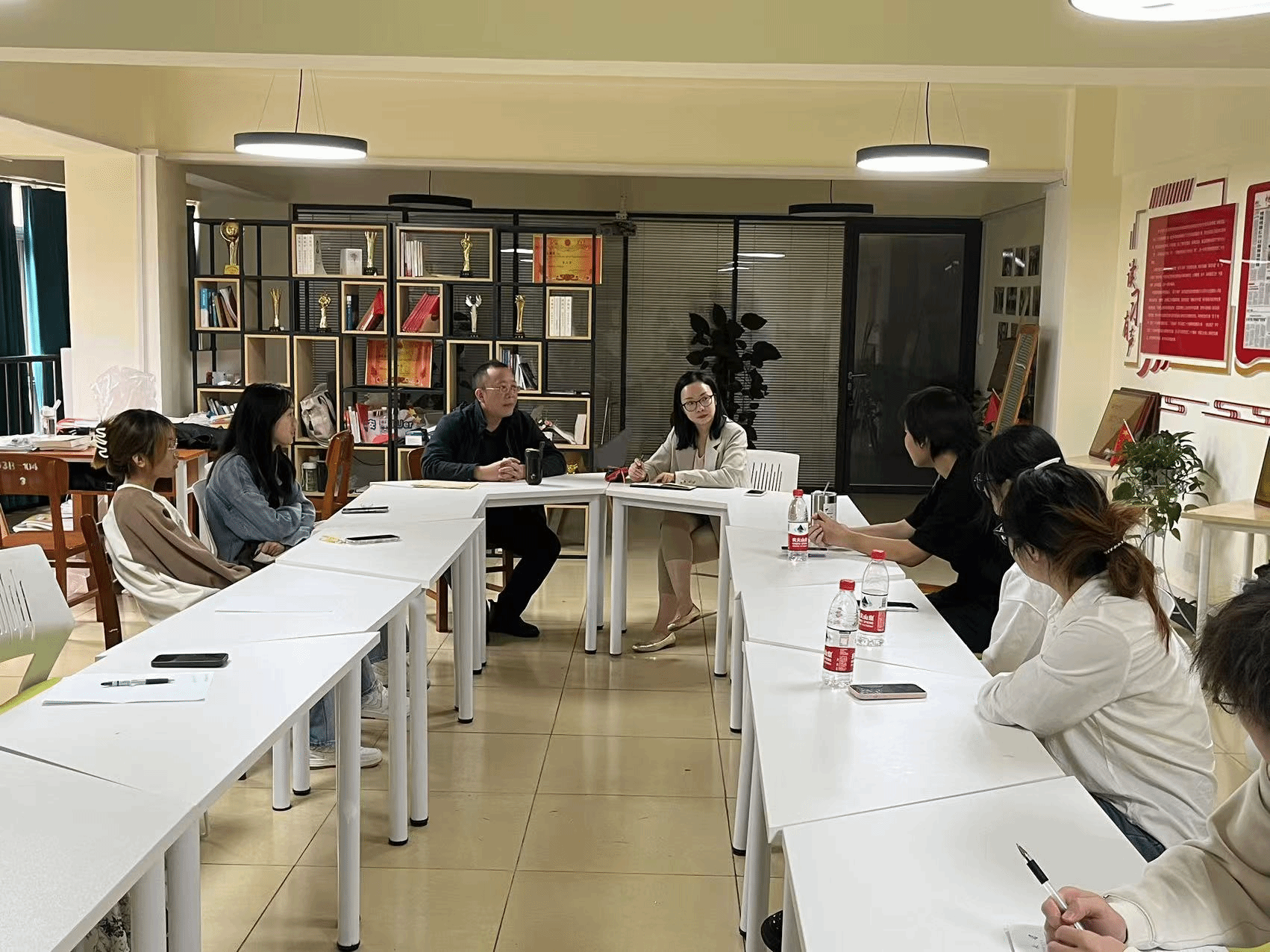 王越老师和田禹老师与员工深入交流,答疑解惑,座谈氛围轻松愉悦,座谈后及时将员工的意见反馈给当事教师。通过此次座谈,了解了员工的学习、生活需求,便于公司教师今后更好地有针对性对员工在生活、学业方面提供帮助,是公司党员教师“千师万生包保活动”的实招实举。