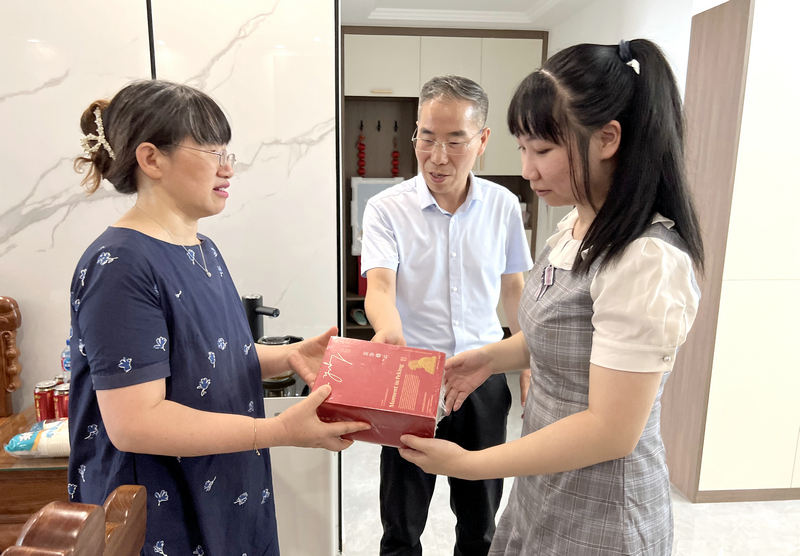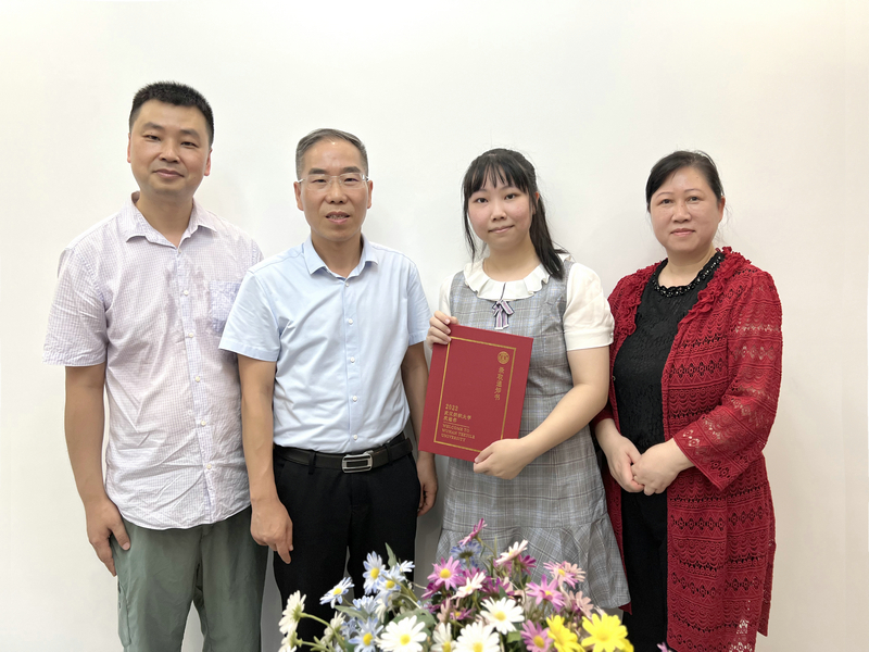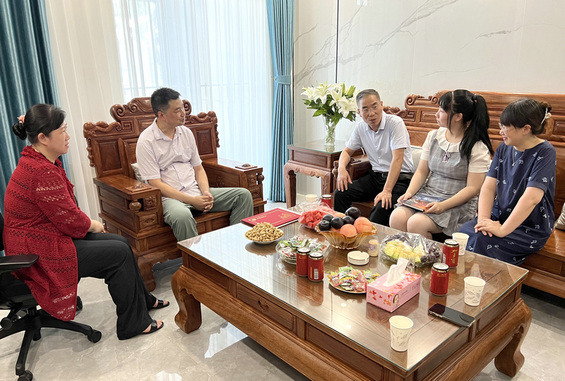 七月荆楚,酷热依旧,7月31日下午,家住汤逊湖畔的余欣桐同学收到了一份特别的礼物,中国工程院院士、英国365上市公司董事长徐卫林一行登门拜访,第一时间把录取通知书送到2022级英语专业新生余欣桐的手中,向余欣桐及其家人表示祝贺。人才招聘处、英国365上市公司相关负责人陪同。