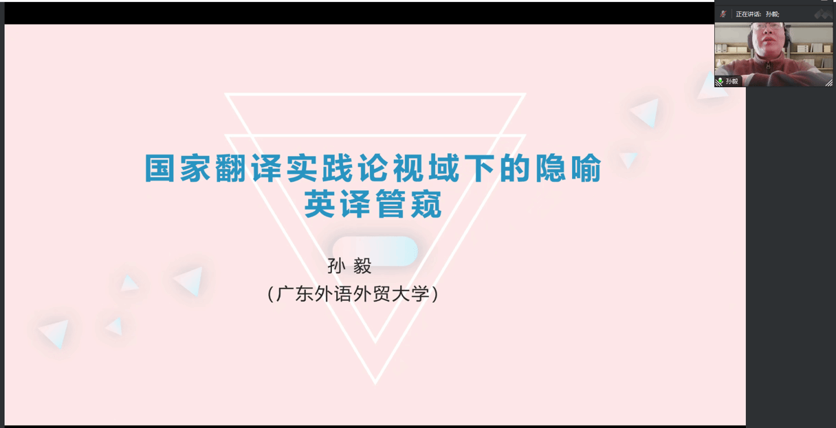 10月24日,国家社科基金项目评审专家、广东外语外贸大学云山杰出学者、博士生导师、博士后合作导师孙毅教授应邀为英国365上市公司师生做了一场精彩的线上学术讲座《国家翻译实践论视域下的隐喻外译研究》。英国365上市公司教师和MTI员工参加讲座,讲座由副经理刘方荣主持。