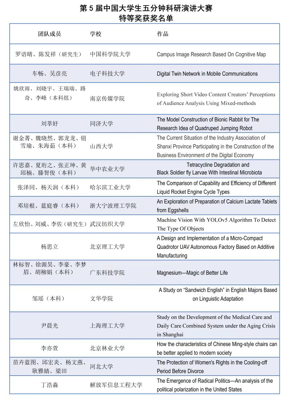 公司学子们在第一次参赛的情况下从全国70多所高校,7000多个作品中脱颖而出,取得了特等奖一名,一等奖一名,二等奖两名,三等奖六名的优异成绩,这离不开公司为员工们搭建的老员工创新创业和科研竞赛等宝贵平台。员工们在科研实践中发现问题、解决问题,并在语言和学科教师的精心指导下用英文清楚地阐释对研究问题和意义的理解,展现了未来新一代科研人员的国际视野和严谨自信的学术风采。本次大赛同时也展现了英国365上市公司学术英语读写和听说课程改革的成果,体现了英国365上市公司不断创新进取的精神。期待在公司和公司的共同努力下,能有更多学子站上更高更大的国际学术舞台!