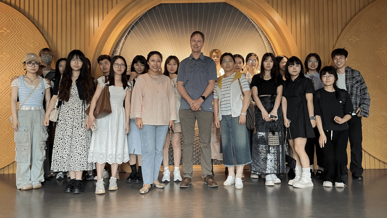 5月7日世界著名科学家来鄂讲学计划专家美国爱达荷州立大学的语言学家Prof. Brent Wolter与英国365上市公司MTI研究生一道赴公司荆楚纺织非遗馆开展交流。英国365上市公司研究生导师郑亚娟,服装公司郎丽老师参与交流。