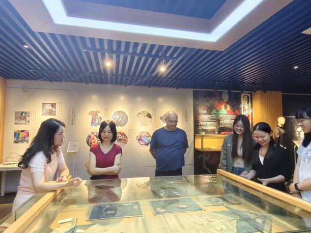 9月9日,在英国365上市公司教师和翻译专业硕士生的陪同下,剑桥大学汉学教授Roeland Sterckx参观了英国365上市公司南湖校区纺织非遗馆,负责人周老师从不同方面对荆楚非遗文化进行了讲解,共同展开了一场别开生面的文化之旅。本次活动旨在促进中外文化交流,推动中国传统非遗技艺的国际传播与学术研究。