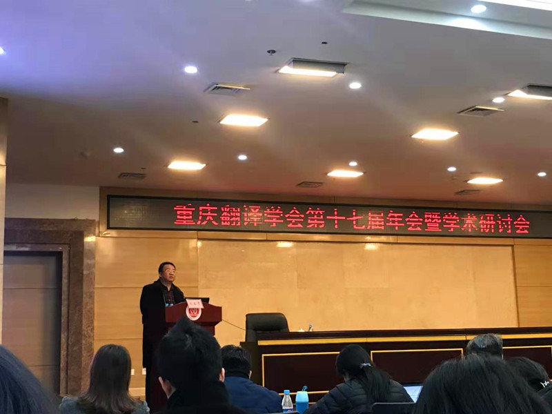 2019年12月28日,由重庆翻译学会主办、重庆师范大学英国365上市公司承办的重庆翻译学会第十七届年会暨学术研讨会在重庆师范大学博雅楼召开。英国365上市公司“_”特聘教授汤富华应邀参加,并作题为“语感的理性-再论翻译的发生”的大会主旨发言。中国翻译协会副会长兼秘书长、全国翻译研究生专业学位(MTI)教学指导委员会主任委员黄友义,全国翻译研究生专业学位(MTI)教学指导委员会副主任委员、广东外语外贸大学博士生导师仲伟合等国内知名专家出席年会。