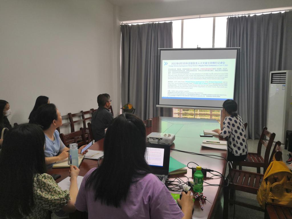 徐小月同学以“外交部例行记者会发言翻译分析”为主题,就自己在翻译中遇到的重难点问题进行了分析。比如对“国务院副发言人”、“德国总理”、“伊核协议”等词的译法,应遵循官方标准译本。对“弥合”、“态度”、“维护”等词汇的处理要更加灵活,应该深入分析和学习官方译本,掌握一些更地道的表达。对时政文本中出现的一些特殊表达应该在平时多多积累,以便在以后的CATTI考试以及翻译实践中灵活运用。
