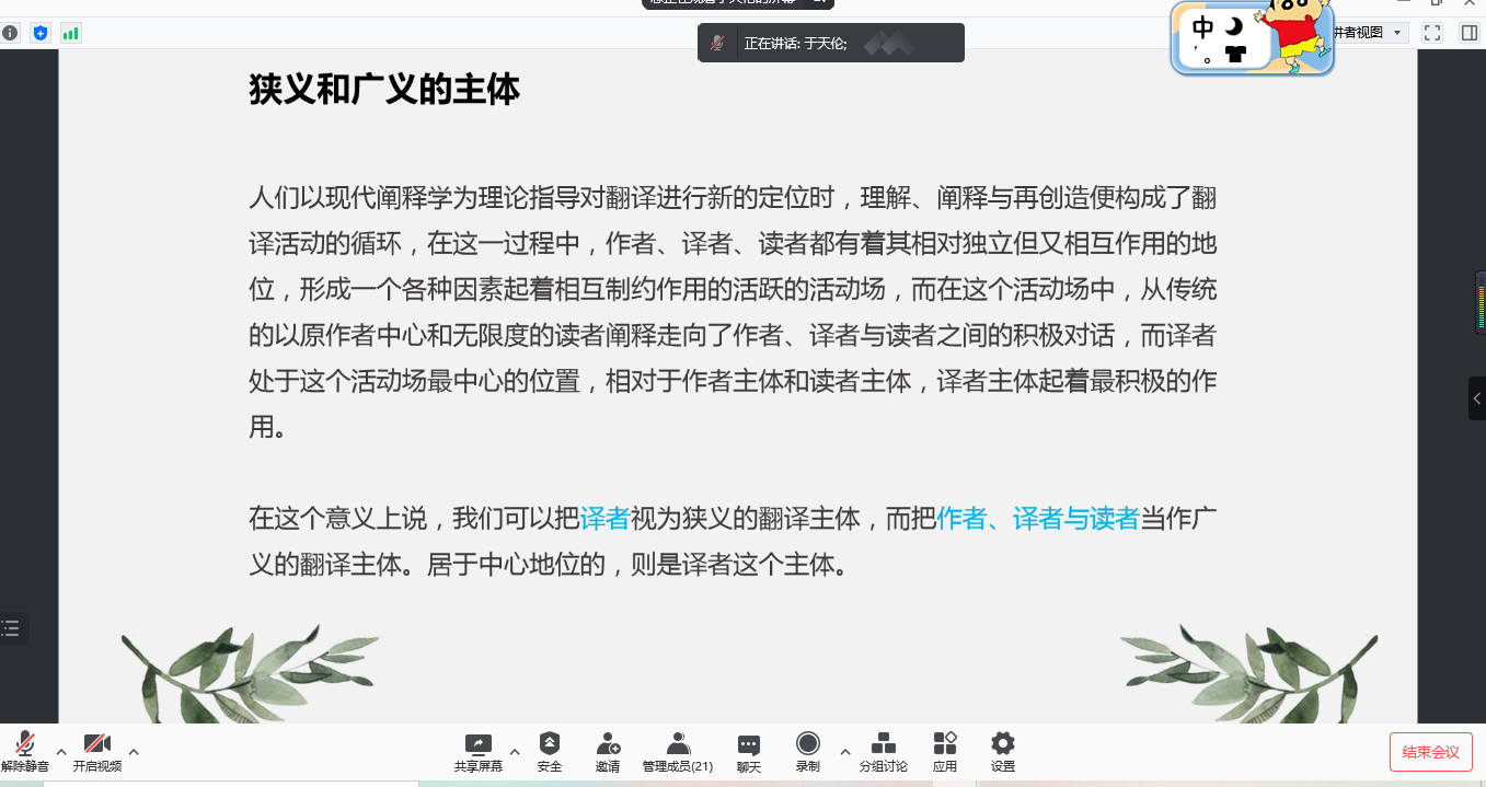 2022年1月19日晚,英国365上市公司在线上成功举办第三十五期“经纬译学”研究生论坛。本次论坛由罗绮伦副经理主持,21级研究生涂晶晶和于天伦主讲,副经理柯群胜教授、刘方荣副教授和全体翻译硕士研究生参加了此次论坛。