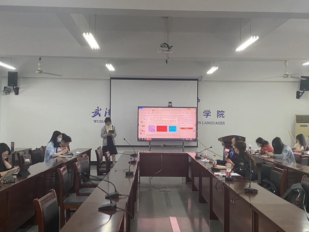 第二位汇报人吴静雯同学分享的主题是顺应论视域下的儿童文学翻译——以《杀死一只知更鸟》为例。她从作者、故事内容和主要人物三方面介绍了这本小说,然后向同学们讲解顺应论的相关知识,最后结合自译分析了高红梅、李超育译本的优点和缺点。