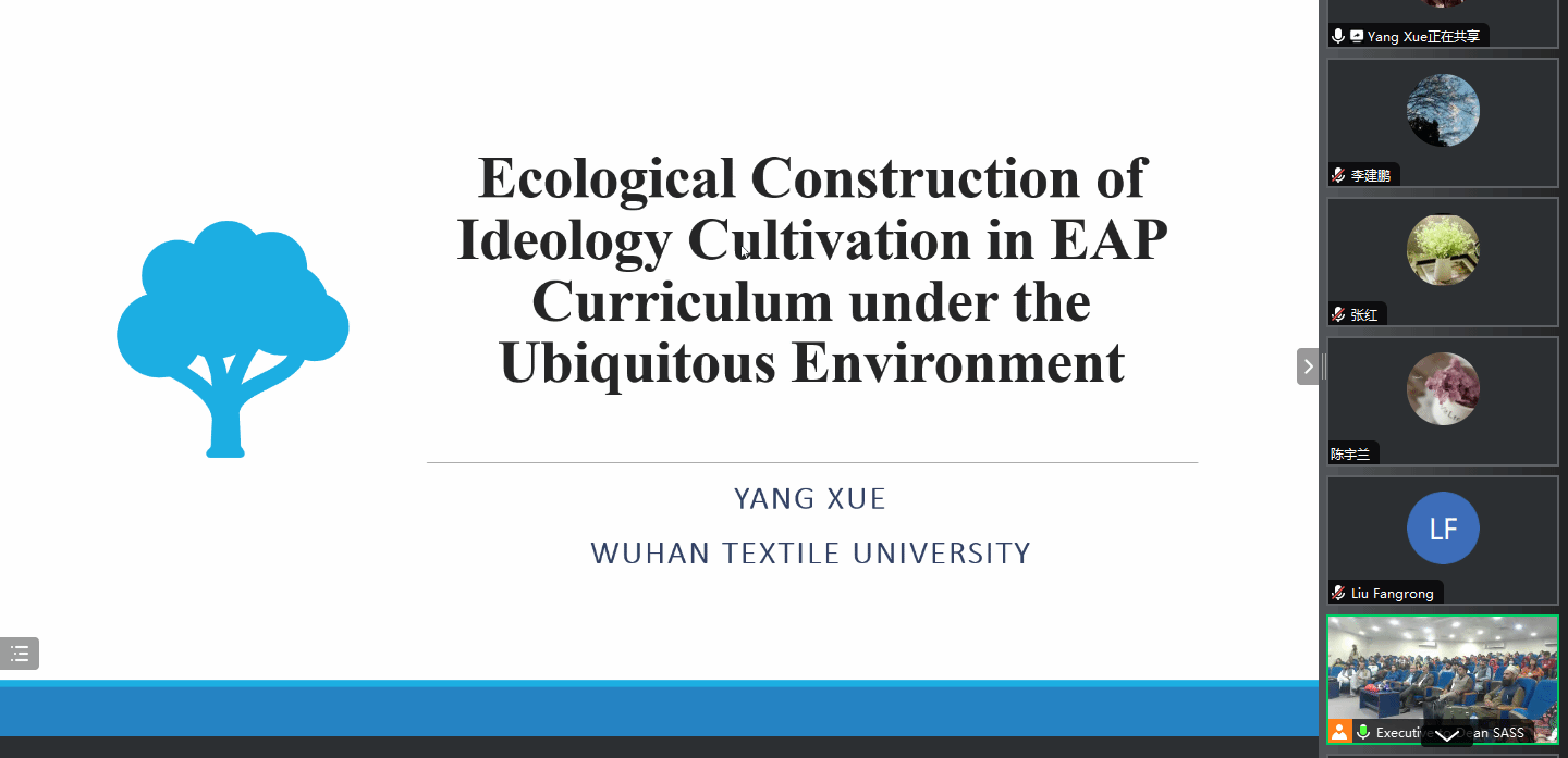 23日下午副经理刘方荣和巴方教师共同主持会议。杨雪老师在会议上做了“沉浸式学科英语课程思政的生态建设”主旨报告。她引用著名学者黄国文的观点:英语教学是教师、员工和教学管理共同组成的一个完整的生态系统。学科英语是通用英语和专业英语的桥梁,学科英语要注重培养员工的学术伦理和学术行为规范、开发员工的创新思维和批判思维等学术能力,还要培养员工的学术价值观。杨老师强调把课程思政和学科英语教学内容融合是完全可能并且必要的,这种融合能有效地提升教学和学习效率。