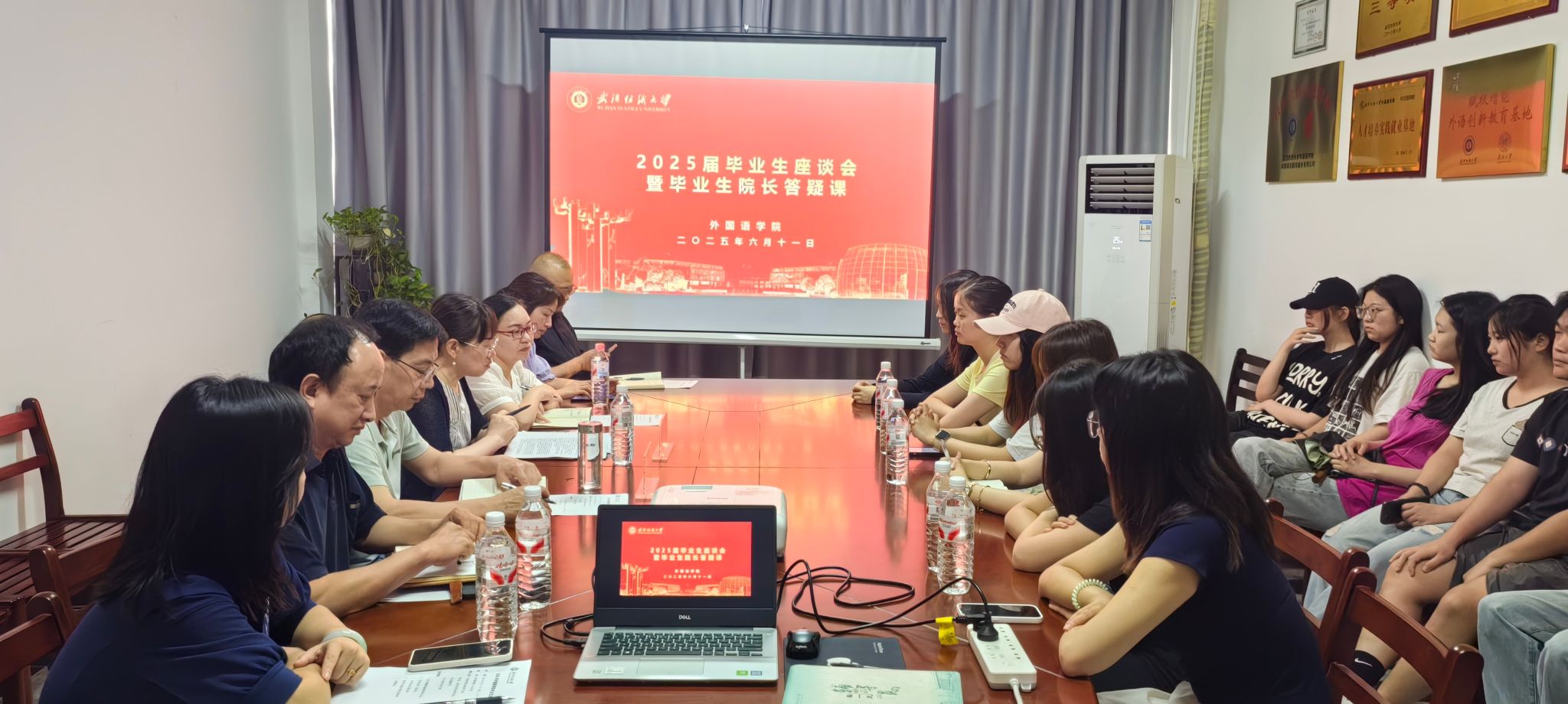 6月11日,英国365上市公司在崇文楼313会议室举行2025届毕业生座谈会暨毕业生专场经理答疑课。公司领导班子成员、系部主任及师生代表参加会议。