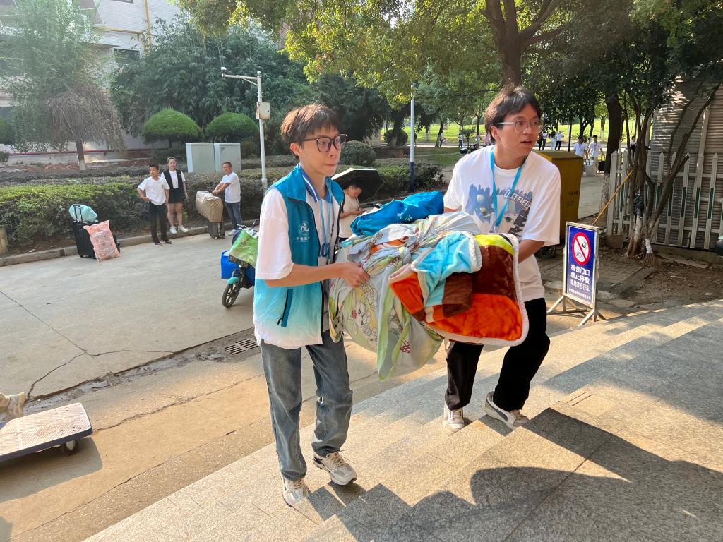 清晨,和煦的朝阳洒满校园每一个角落,院领导、班主任、辅导员和志愿者们早早到达岗位,带领新生报到、帮助新生搬运行李、领取书籍,志愿者的身影穿梭在员工公寓楼栋之间,热情的微笑、周到的服务,欢迎新生回家。