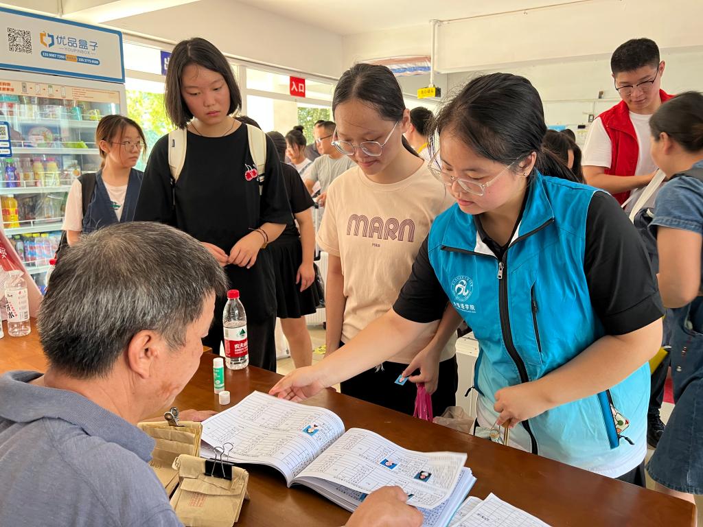 接过手中的行李、核验录取通知书、完成系统注册,已然真正成为一名老员工啦!和父母、老师一起打卡拍照,庆祝老员工活正式启航。