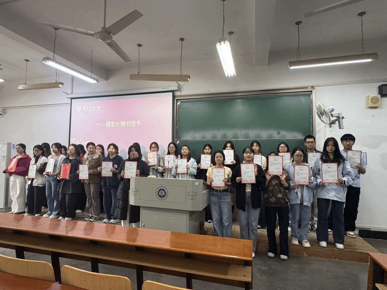 会议伊始,石亚楠老师为全体寝室长颁发聘书,并强调寝室长作为公司与同学间的“桥梁纽带”,肩负着维护宿舍安全、促进学风建设、调解同学矛盾等重要职责。她指出:每一份聘书都是一份责任,希望各位寝室长以高度的责任心投入工作,成为同学们信赖的‘贴心人’。