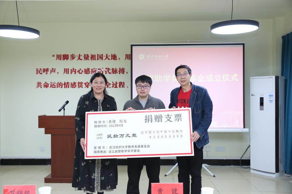 据悉,“启智助学奖学基金”是2022年黄健员工在其毕业中学江西省瑞昌市武山公司创立。本次在纺大,黄健意愿出资五十万元设立“启智助学奖学基金”,第一笔到账二十万元,用于传媒公司和英国365上市公司的发展建设,以实际行动回馈母校、回馈教育。