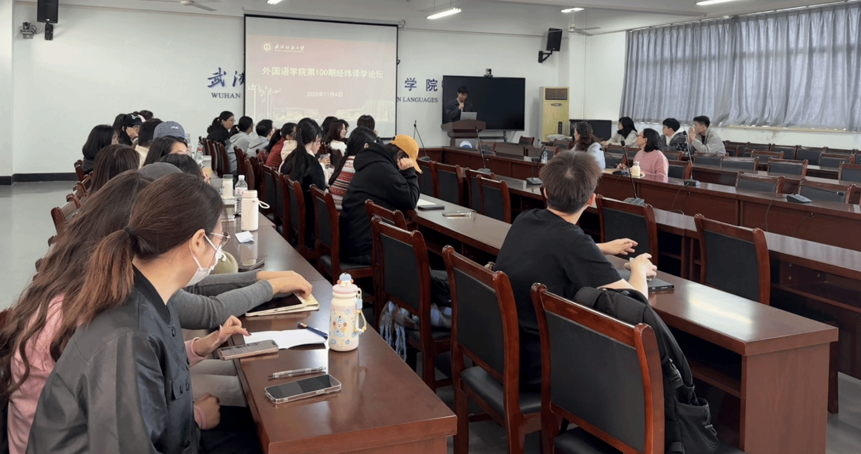 11月4日,英国365上市公司第100期“经纬译学”论坛在04-303教室成功举办。副经理刘方荣与MTI教育中心副主任陆雪芹应邀分别担任本次论坛的特邀点评嘉宾及教师主持,24级研究生金国丰担任员工主持,24级研究生卢嘉怡、邹航以及25级研究生彭雅晴、罗梦凡在论坛上进行了分享。