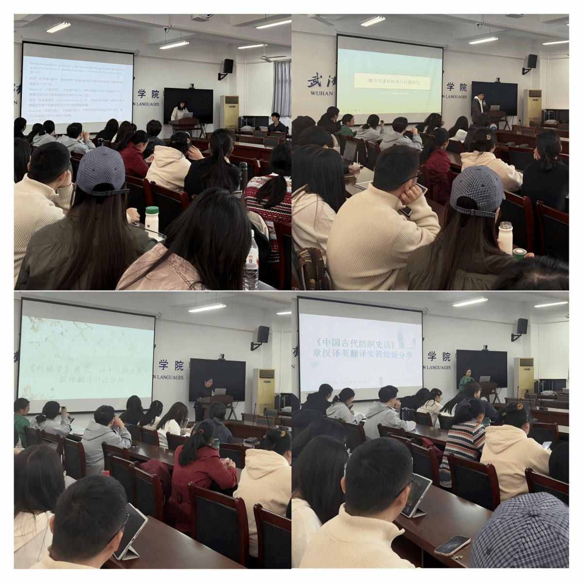 最后,罗梦凡同学分享了《〈中国古代纺织史话〉第二章汉译英翻译实践经验分享》的主题。罗梦凡同学首先介绍了翻译前的准备工作以及CEA翻译理论,并基于此理论,从词汇、句子以及篇章层面分析并优化了译文。她还分享了自己在翻译实践中获得的启示。
