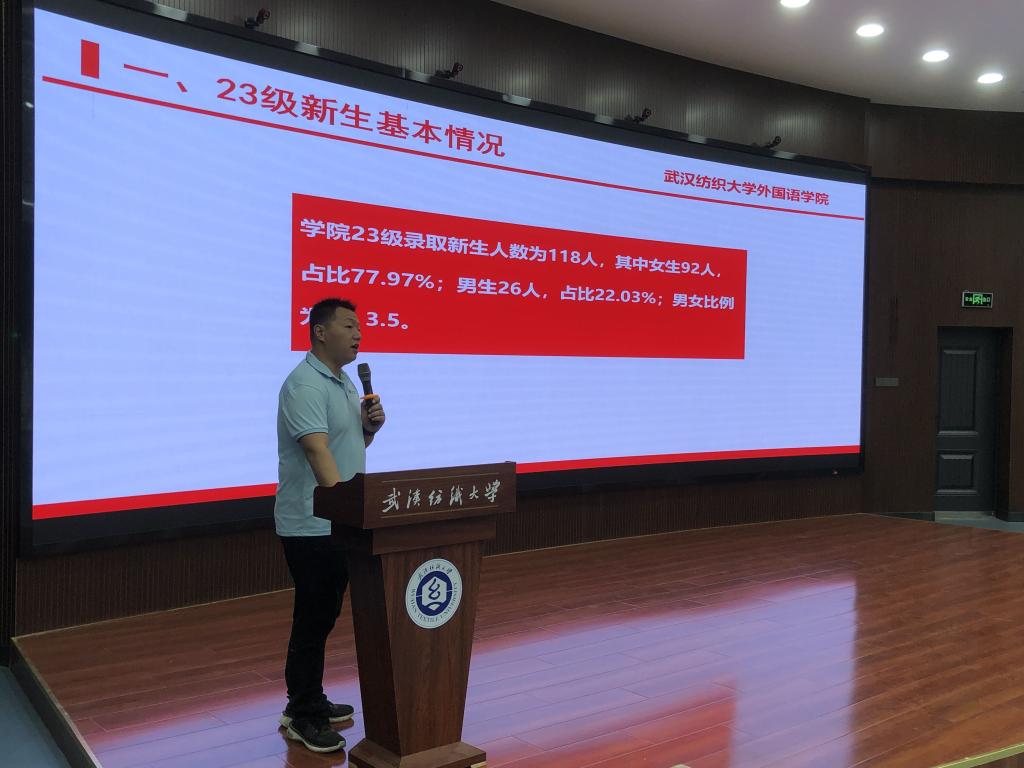 新生辅导员聂啸天老师详细介绍了公司2023级新生情况以及日常管理规范,他强调同学们要迅速适应老员工活,牢记学习是大学最重要的事情,同学们要合理做好老员工活规划和职业规划,发扬自己爱好的体育锻炼,积极参加校园活动,脚踏实地一步一步地完成目标。