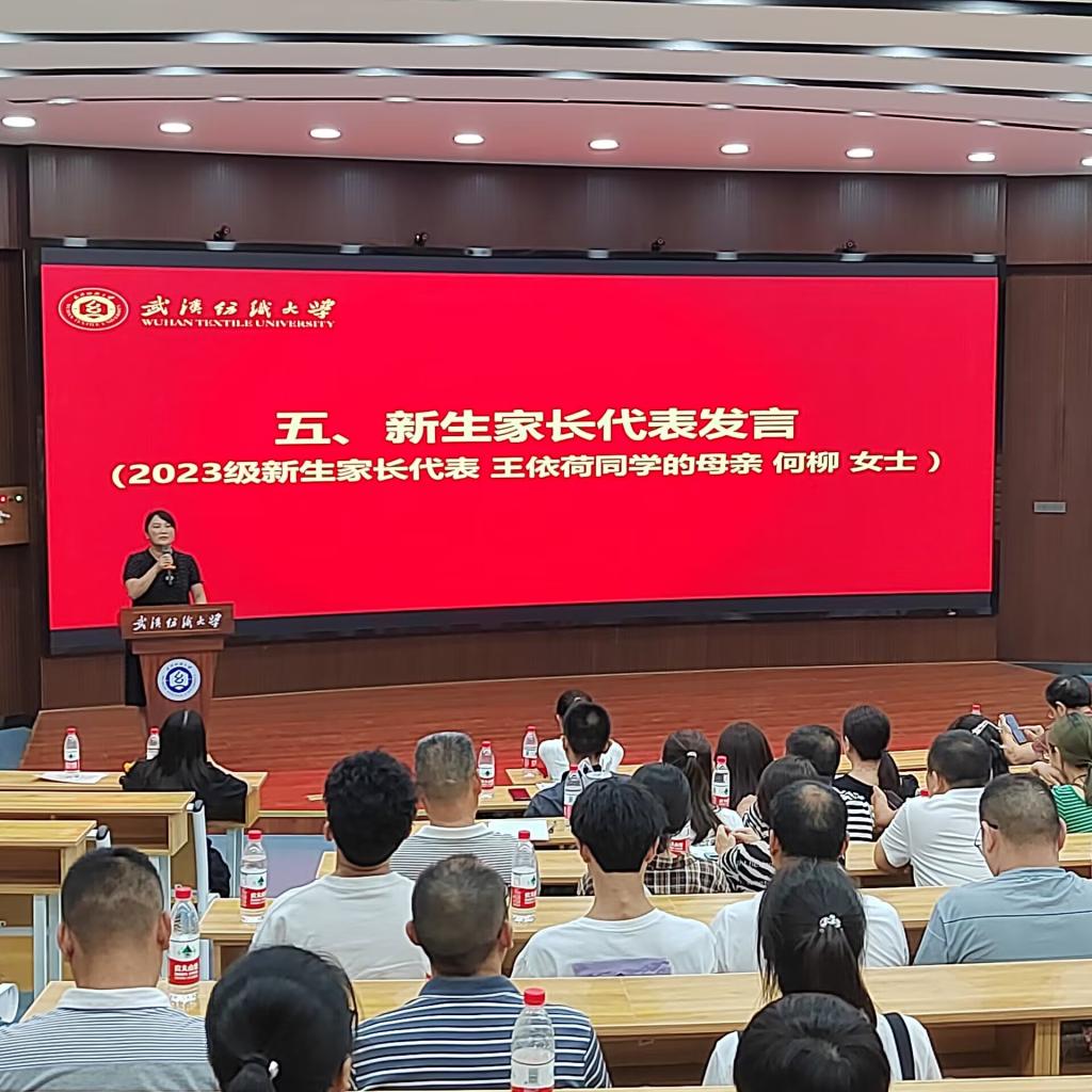 英语专业王依荷的母亲何柳女士作为新生家长代表发言。她表示,将孩子送到纺大,一是鼓励家长朋友们做到放手、放心但不放任。鼓励家长相信孩子、相信公司、相信老师,做孩子的知心朋友。二是鼓励孩子们要爱公司、尊老师、礼同学、严律己,认清大学是起点,不是终点,鼓励孩子们在大学里培养独立思考、独立生活、独立处事的能力。三是希望公司加强员工的引导和教育,为同学们营造浓厚的学习氛围,充分运用各类学习资源,为孩子们提供更好的学习平台,提供更优质的实习实践机会,培养更多拥有世界眼光、家国情怀、敢于担当的新时代青年。