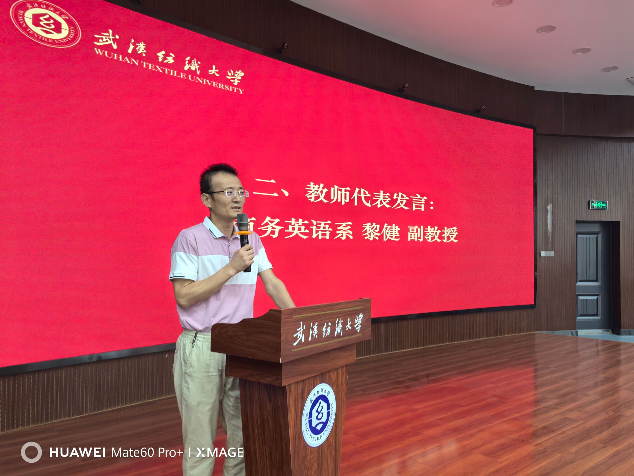 新生班主任代表田禹博士分享大学学习的方法和技巧,用“探索”一词形容大学阶段的学习,强调员工要积极转变学习心态,学好基本技能,将外语作为提升自我的良好工具。