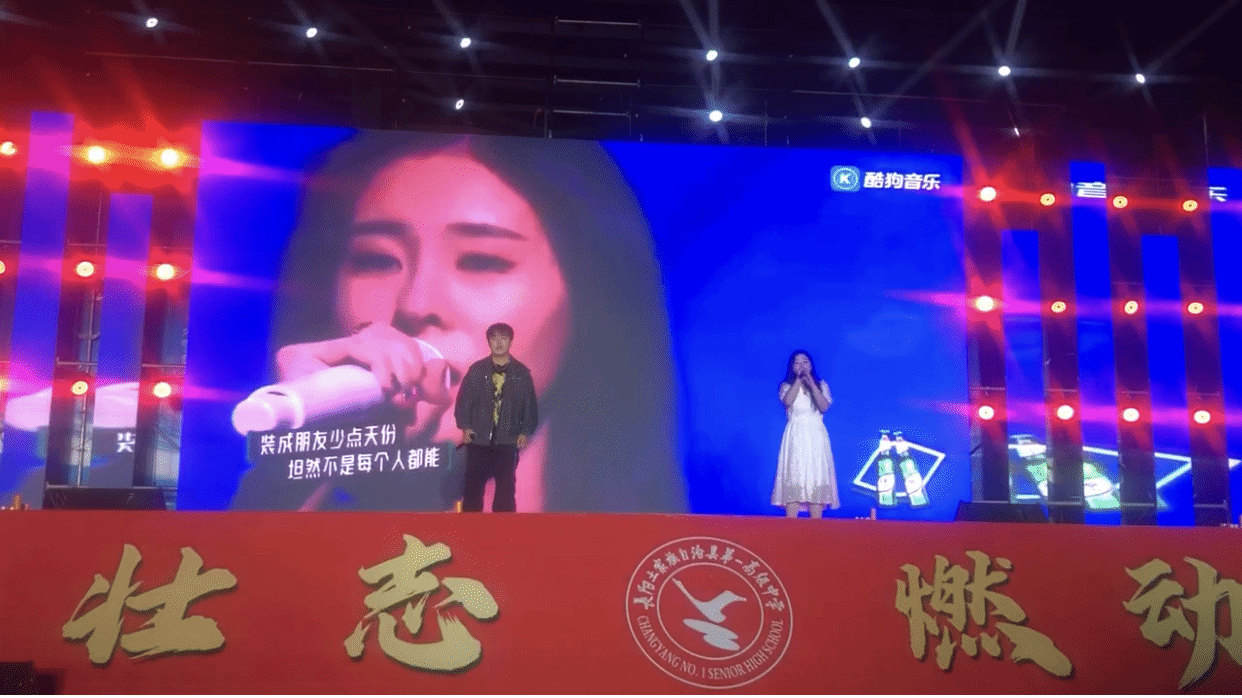 长阳一中作为公司重要的生源地中学,一直与公司保持着密切联系。在此次科技艺术节晚会上,当两名商务英语专业员工走上舞台,现场气氛瞬间被点燃。他们深情对唱《指纹》,悠扬的歌声飘荡在校园上空。他们用美妙的嗓音展现出独特的艺术魅力,每一个音符都传递着青春的活力与激情,台下观众沉浸其中,不时爆发出热烈的掌声。