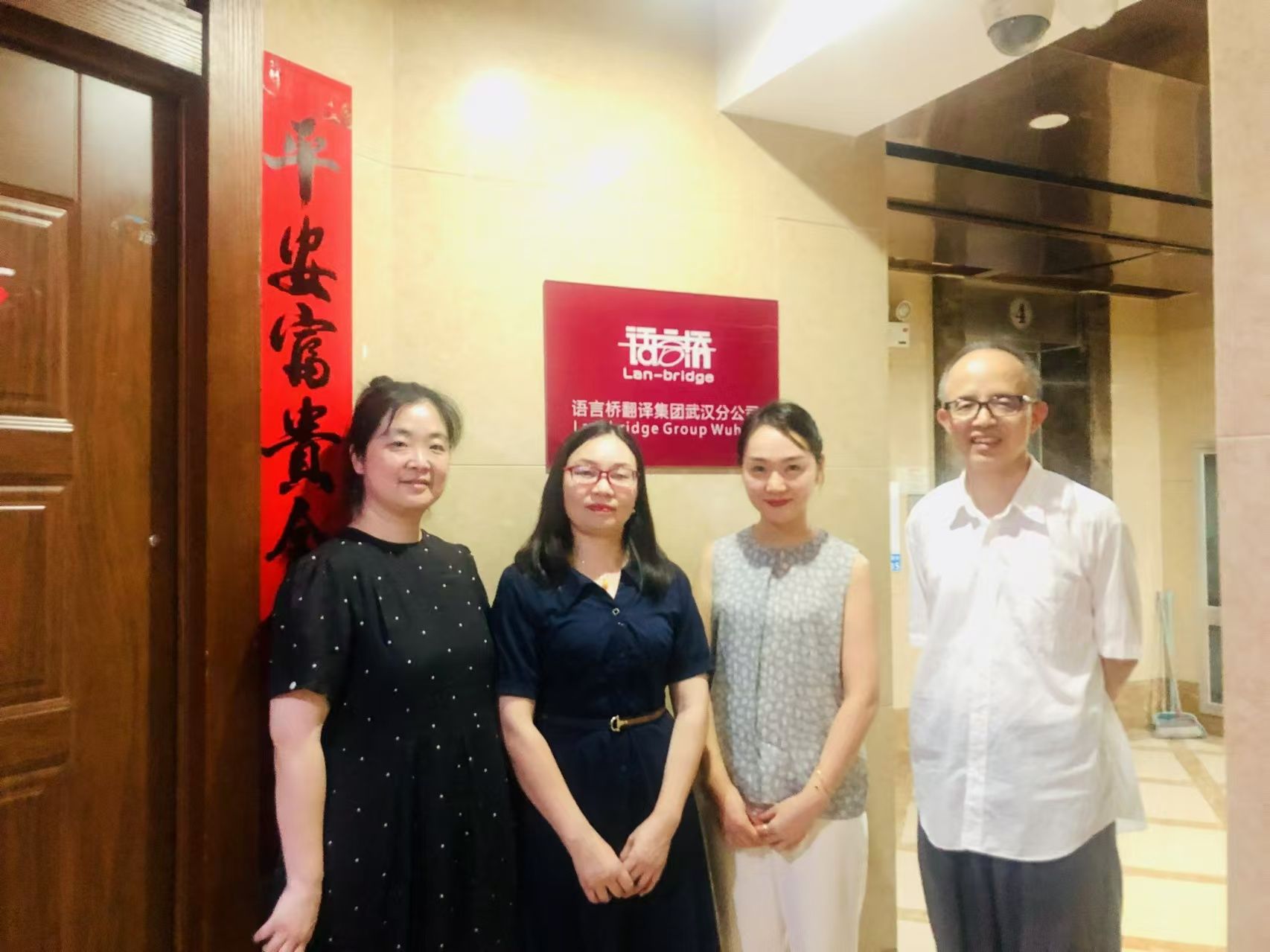 8月26日,在四川语言桥公司武汉分公司,刘方荣等在朱曼曼经理的陪同下参观了公司,了解了译员工作的方式和流程,同时在线上同李璐总经理就研究生工作站的建设、团队培训、CATTI考试等方面进行了探讨。刘方荣表示未来要进一步拓宽合作内容,把研究生工作站的工作做扎实,为员工的实习及就业打下良好的基础。