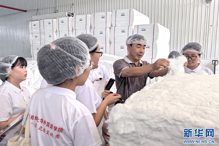 图为员工走访纺织企业。新华网 发