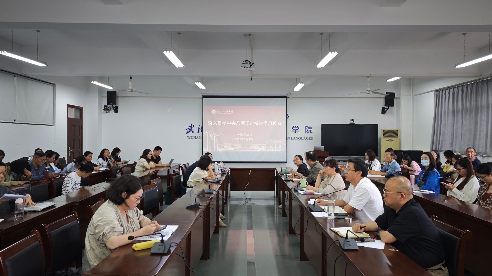 5月15日下午,公司召开警示教育大会暨深入贯彻中央八项规定精神学习教育专题学习,党委书记胡中原主持会议,全体教职工参会。