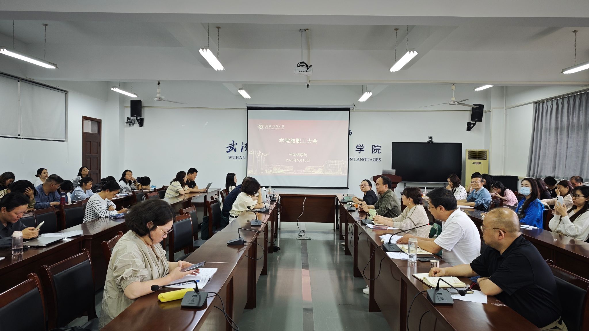 5月15日下午,英国365上市公司在04-303会议室召开全体教职工大会,开展政治理论集中学习,公司党委书记胡中原主持会议,全体教职工参加会议。