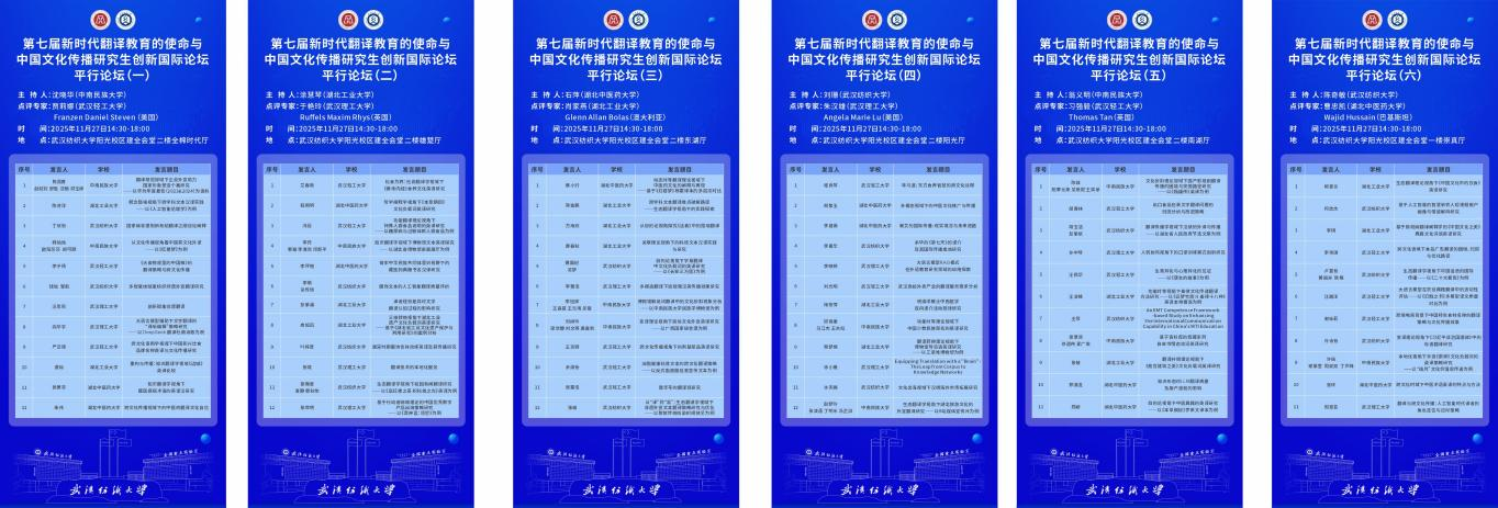 开幕式后,六场平行论坛同步开展,来自六所高校近80名MTI研究生在论坛上分享了自己的翻译与传播实践及研究成果,主题涵盖国家形象建构、纺织服饰文化、中医药文化、经典书籍翻译、食品知识与文化、游戏文本、旅游景点介绍及非遗等方面,运用不同的翻译理论和人工智能、大语言模型等翻译技术,体现了新时代翻译专业研究生的专业水平和能力,六所高校派出的中外专家学者组成专业点评团,为本次平行论坛的分享进行了精准点评,精心指导,研究生们均表示收获满满。