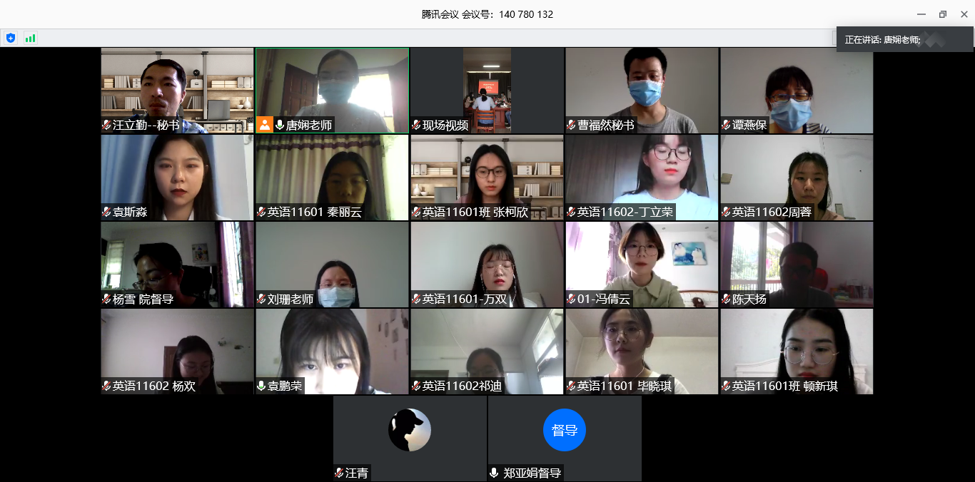 5月28日下午,受全球新冠肺炎疫情所致,在最大限度保障员工健康、安全及减少聚集的前提下,为确保公司2020届全体本科生毕业论文答辩的顺利完成,全体答辩人汇集云端,分别就各自的本科学士学位论文展开学理性论述,并就答辩组导师的提问展开理论性应处。教务处处长何畏到答辩现场对答辩工作进行了指导,本次答辩工作由公司教学副经理罗绮伦统筹协调,并由英语系副主任唐娴老师具体执行推进。