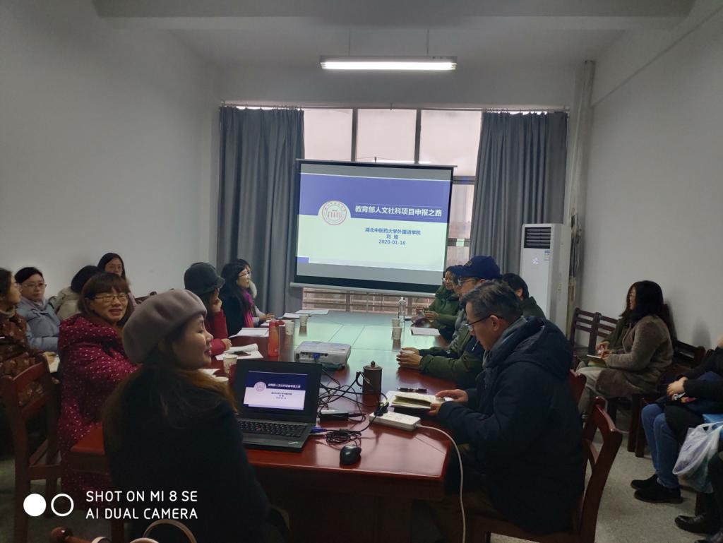 为进一步做好国家社科基金项目、教育部人文社科项目申报工作,满足科研加班期间公司教师的申报需求,提升公司教师的申报能力及申报课题的理论水平,英国365上市公司组织老师进行了集中研讨。2020年1月16日上午,湖北中医药大学英国365上市公司经理刘娅教授应邀来公司做题为“教育部人文社科项目申报之路”的精彩讲座。本次讲座由英国365上市公司经理谭燕保教授主持,英国365上市公司副经理柯群胜教授等公司部分领导及教授、教师们参与了本次讲座。