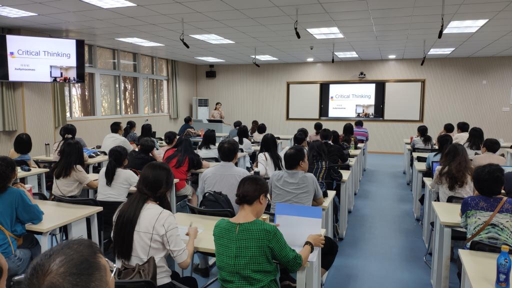 郑亚娟老师首先分享了她的学习心得,主要围绕思辨能力以及在大学英语教学中怎样培养员工的思辨能力。她首先介绍了什么是思辨能力、思辨能力的起源--苏格拉底问答法。接着重点阐释了Bloom’s Taxonomy(布鲁姆斯分类法)中不同层次的思辨能力,即remembering(记忆)、 understanding(理解)、 applying(应用)、analyzing(分析)、evaluating(评价)、creating(创新),并展示了培养思辨能力的具体课堂活动设计。最后,郑亚娟老师结合自己的研究方向和申报课题,详细介绍了在“新工科”背景下大学英语教育中的思辨能力研究与创新人才培养,从改变教师的教育理念着手,以及改革课程体系、教学方法和测试模式,将思辨能力培养融入到大学英语课程体系当中,将思辨能力作为评价的一个重要考核环节。近年来,思辨能力培养已成为高等教育改革的中心议题。