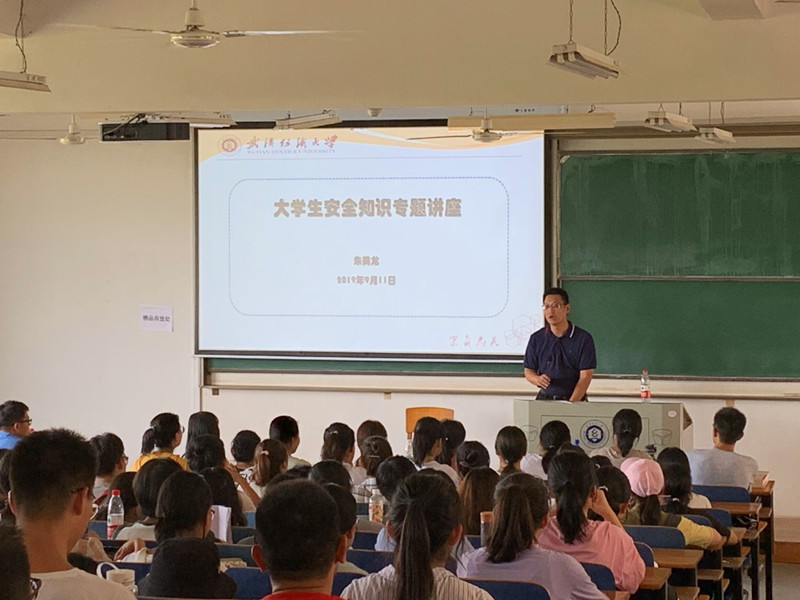9月11日下午,校保卫处副处长朱美龙应邀为公司2019级新生做入学教育第五课——安全知识专题教育。朱处长用生动的典型案例为新生们展示了潜伏在校园内部及周边的各类危险。他强调,员工在校园内遭受校园欺凌、电信诈骗时,应首先保持冷静,可以第一时间拨打公司保卫处电话,校园执勤人员会第一时间赶赴现场处理。