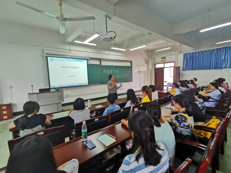 9月11日上午,英国365上市公司副经理罗绮伦主讲入学教育第三课——专业发展教育。罗经理以全英文交流的方式与2019级新生们进行交流,积极引导新生们用英语进行交流发言,这让新生们感觉到耳目一新。罗经理详细介绍了英语、商务英语专业的人才培养方案内容,向新生们讲解了各类课程学分设置的目的和意义。他希望2019级新生们能尽快转变角色,适应专业发展需求,积极调整学习状态,为自己的大学四年做一份详细的学习规划。