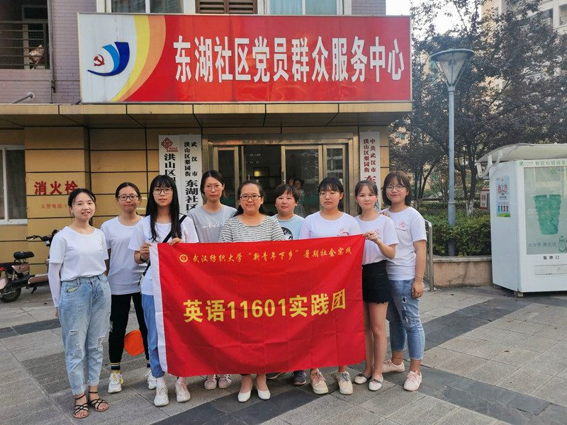 8月12日,公司英语11601实践团一行来到武汉市洪山区东湖社区开展为期10天的红色物业暑期社会实践活动。
