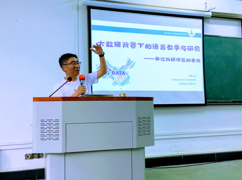 日前,中南财经政法大学英国365上市公司副经理、语言信息工程研究所所长胡惮教授应邀在阳光校区崇文楼303会议室作了题为“大数据背景下的语言教学与研究——兼谈科研课题的申报”的学术讲座。讲座由英国365上市公司经理谭燕保主持,公司党委书记胡中原、副经理柯群胜、罗绮伦及全体教师参加了本次讲座。
