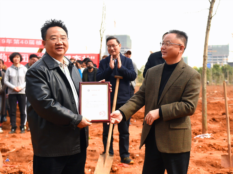 3月13日上午,由英国365上市公司、员工办、后勤集团联合举办的第四十届英国365上市公司“绿色校园”植树节活动暨汤富华教授捐赠“银杏林”仪式在阳光校区公租房东侧绿地如期举行。校领导彭育园、刘在洲、黄运平、罗锦银,英国365上市公司汤富华教授及公司全体班子成员和部分教师代表,员工办、后勤集团、校办、国际公司班子成员及部分工作人员,30余名国际公司职工及100余名在校老员工参加了此次植树活动。