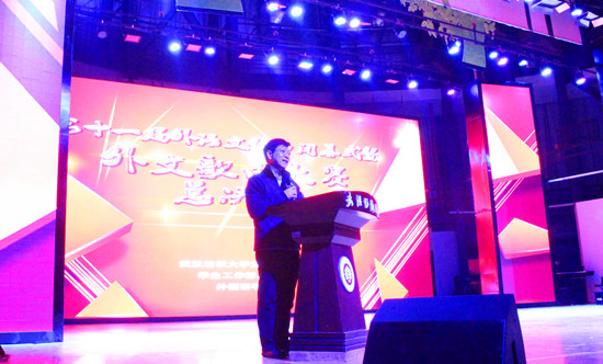 在Smoke Time乐队动人的歌声和校艺术团灵舞团酷炫的舞蹈的烘托下,晚会正式拉开序幕。何经理用优美的全英文开场语为外语文化节十一年的文化传承与延续“点赞”,现场员工掌声喝彩不断。胡书记上台致辞,他表达了对外语文化节活动的祝福,并寄语员工们把英语学好、学深、学透。