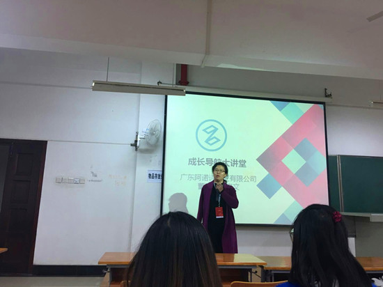 广东阿诺诗厨卫有限公司董事长、公司02级员工梁青云同员工们分享了自己的创业历程与创业感悟,并由衷的希望大家将外语作为一门工具,在学好外语的同时,坚持学习其他知识,不断提高自己的综合能力,做到全面发展。随后,梁青云同在座的同学展开近距离的交流互动,外国语11601班班长章超问及梁青云的梦想是什么,梁青云答道,她的梦想是通过自己的产品改变大家对中国产品价廉质低的看法,从而改变国外对中国制造的偏见。慷慨激昂的回答获得了大家阵阵掌声。而后,彭文涛,严霜两位员工也分别介绍了自己的创业史。最后,柯胜群副经理对此次成长导航大讲堂进行总结,并对在场的莘莘学子表达了殷切的希望。