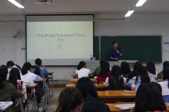 9月29日上午,英国365上市公司于七栋教学楼121教室召开了朋辈领航——2017新老生经验交流会。2017级新生辅导员卫周瑶老师,公司优秀员工代表陆宇成、许敏芬及全体2017级新生参与了本次交流会。