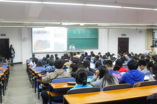 讲座伊始,主持人致开幕词,充分诠释了举办朋辈领航讲座的意义。抱着对梦想的追求与未来的憧憬,来自五个公司的大一新生们都全身心聆听讲座。来自英国365上市公司的谈幕玲同学率先开讲,她以志愿服务为主题,介绍了自己两年来的志愿者工作经历,进一步引申大家对生活的思考——人的一生应多去外面的世界看看,用自己的双手触摸梦想。同时,她对生活的乐观与未来的自信,引领大家用积极的态度迎接生活。接下来登场的是电子电气公司的王波同学,丰富的演讲经历让他一下子hold住了全场,他稍带幽默的演讲方式一下子吸引了大家的眼球,他通过自己的学习,求职及任职经历强调了个人文凭的重要性。作为班长的他,有着良好的人际交往能力和丰富的工作经验,这为他后来的求职之路铺下了良好的基石。相信从他的分享中大家已经意识到良好的人际关系和丰富的社会实践深深影响着未来的发展。最后,来自环境公司的罗诗露同学和大家探讨关于学习的方法,品学兼优的她对学习有着自己独特的方式,她宝贵的经验启发着在场的朋辈就学习上该如何上进。