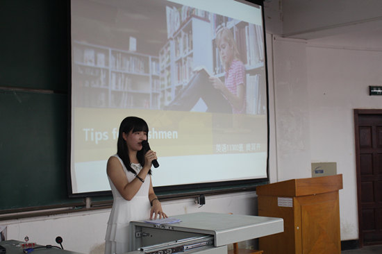 老生代表黄其卉同学代表全体老生热烈欢迎新生同学的到来,并向他们介绍自己的大学经历,传授经验,鼓励新生早日为自己制定学习和生活计划,积极参加志愿者活动,把握每一次提升自我的机会,丰富和充实老员工活。