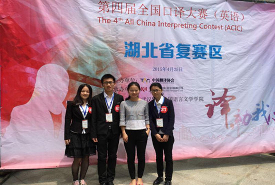4月25日,第四届全国口译大赛湖北省复赛在武汉大学外国语言文学公司学术报告厅举行。公司英国365上市公司曹婷老师带领外语公司员工王鹏远、余丹、文雅玲参赛,与来自湖北省其他各大高校的另外69位选手进行角逐。最终,王鹏远同学以第十二名的成绩荣获二等奖,并顺利晋级将于5月9日在湖南大学举行的第四届全国口译大赛华中大区决赛,余丹、文雅玲同学也凭借出色的发挥获得三等奖。