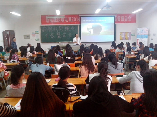 为进一步拓宽校企合作渠道,拓展外语公司英语专业毕业生专业就业渠道,2014年10月23日,公司举办了“新航线跨境电商2014年校园推介会暨企业高管报告会”,邀请广东新航线跨境电子商务服务有限公司总经理孙媛以《新航线跨境电商人才培养及服务计划》为题解析了跨境电商发展与人才培养。外语公司2015届100多名毕业生聆听了报告会。外语公司分党委副书记张鹏主持了报告会。