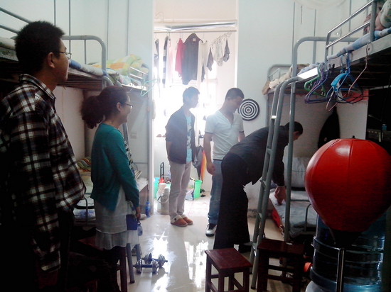 走访时张鹏副书记称赞同学们在紧张的专四专八备考之余,还不忘宿舍的干净整洁。同学们都很有创意地在墙上贴上照片或者贴画,装扮自己的小天地。每个宿舍都各有特色,营造出一种大家庭的温馨。张告诫同学们要好好珍惜大学的时光,努力学习。同学们也纷纷表示不会辜负公司和老师的期望,一定会好好学习,充分利用青春最美好的四年时光努力奋斗。