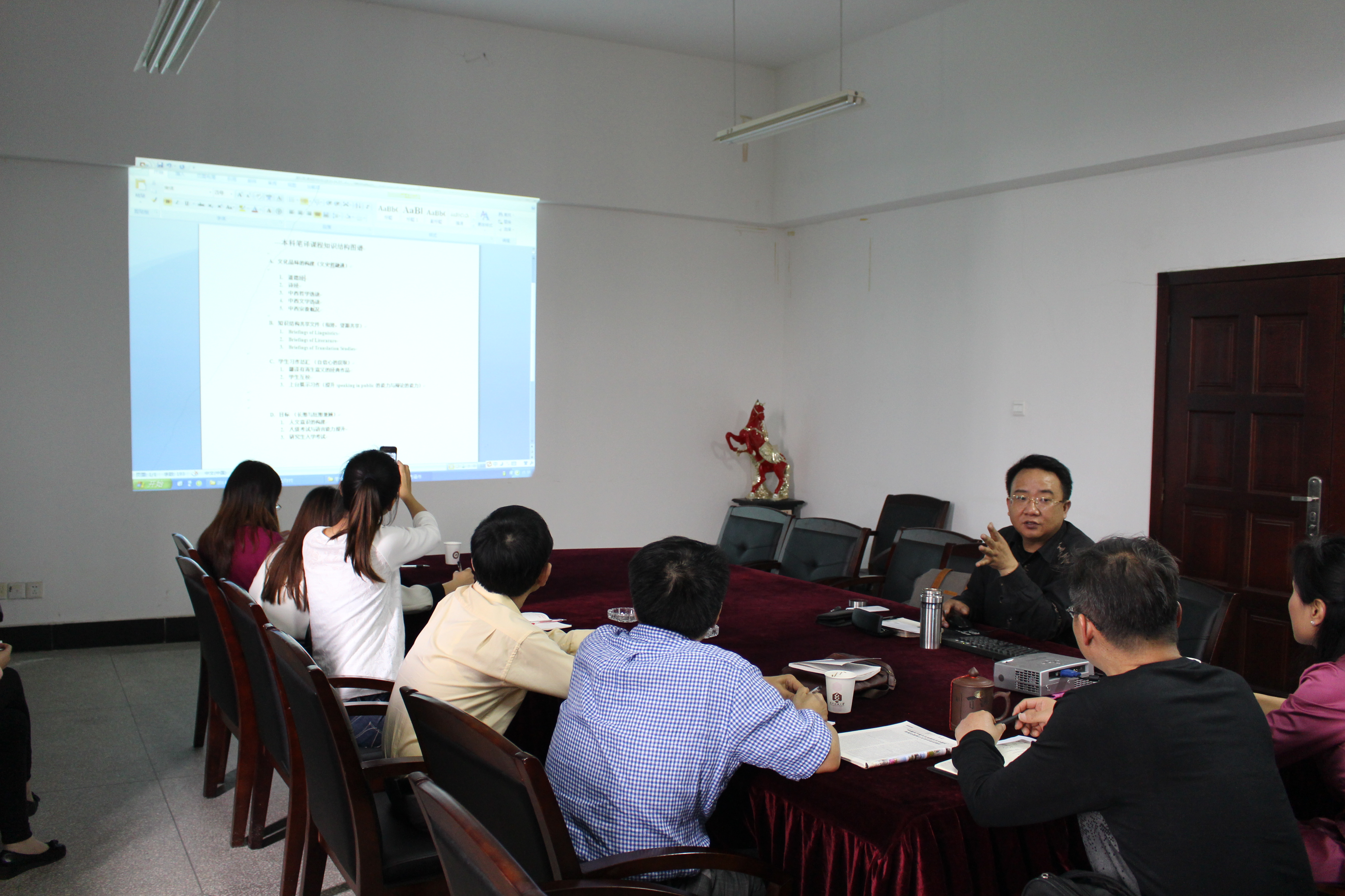 讲座的最后,公司教师教师代表纷纷就翻译本科的课程如何设置和非英语专业翻译如何做教研与汤教授进行热烈探讨。