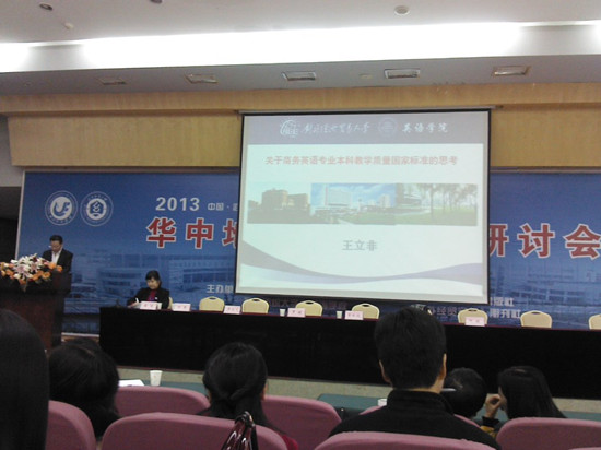 冬日暖阳,汤逊湖畔。为促进学术交流,探讨商务英语学科发展思路、商务英语专业建设及人才培养等相关问题,2013年11月30日,由公司英国365上市公司和湖北经济公司英国365上市公司联合主办的2013华中地区商务英语研讨会在湖北经济公司隆重举行。来自对外经济贸易大学、宁波诺丁汉大学、中南财经政法大学、河南财经政法大学、桂林电子科技大学、等省内外40多所高校的专家教授以及湖北经济公司和公司外语公司教师代表参加了大会。大会由湖北经济公司英国365上市公司何明霞经理主持。英国365上市公司何畏经理应邀在大会上致辞。