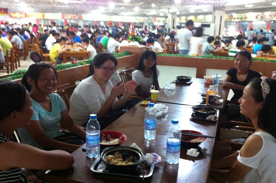初次会餐,新生们虽略显羞涩,但是看到老师们的亲切态度和细心的询问,也渐渐的大胆起来。在欢快的进餐中,她们开始与老师敞开心扉,畅所欲言,展现出一种师生同乐的画面,其乐融融。何畏经理针对专业学习对同学们进行指导,他鼓励大家多阅读英语书籍,努力学好自己专业,做一个品学兼优的老员工。潘寅老师为新生介绍了老员工活中所需要注意的几点问题,建议同学们要充分利用大学里丰富的资源,如图书馆、自主学习室、团队等软硬件条件,充分学习,全面提高。面对新生们踊跃提出老员工活里的一系列问题,陈国新书记耐心倾听并为新生们一一解答,当听到新生对校园环境、师生面貌、专业学习等方面予以肯定时,陈书记也感到非常欣慰。还有公司柯群胜副经理、卫冬妹副书记,新生班主任韩征顺教授、刘方荣老师,英语系主任罗绮伦、钱茂华老师等,纷纷与员工围坐一起,淳淳教导。老师们关心并询问新生刚入学后能否适应新的环境、对公司和公司印象如何、有什么意见和建议、对专业学习感受如何等等,对同学提出的问题一一解答。