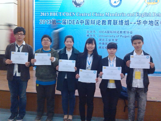 3月22-24日,由国际辩论教育协会(IDEA)主办,湖北工业大学和美国University of Puget Sound联合承办的“第二届IDEA-HBUT华中地区中英文辩论赛”在湖北武汉举行。公司英国365上市公司华妤琪、刘茜茜等6名员工组成的代表队一路披荆斩棘成功进军最后的半决赛,经过激烈的角逐,最终荣获英文辩论赛二等奖的优异成绩。