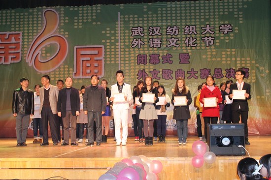 歌曲大赛进行期间,举行了第六届外语文化节赴美文化实践优秀学员、“21世纪杯”全国英语演讲比赛校园选拔赛、外语征文大赛、创意配音大赛以及最后的外文歌曲大赛颁奖典礼,90多名获奖同学接受了由教务处、学工处、宣传部和外语公司共同颁发的荣誉证书,收获的喜悦渲染了整个舞台。