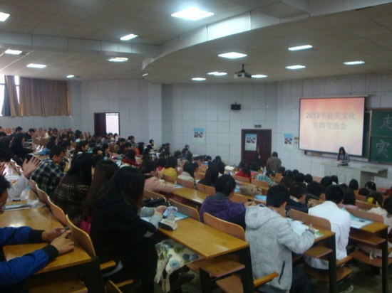 11月8日下午,第六届外语文化节系列活动之赴美文化实践经验交流会在07-T302举行。湖北省教育厅对外交流处陈丽华主任、北京外企服务集团(FESCO)优势办吴可非老师和英国365上市公司分党委卫冬妹副书记亲临现场作赴美实践活动做指导。2012年优势赴美实习学员孙钰凡和江紫薇等同学与现场几百名学子交流自己赴美实习中的收获。